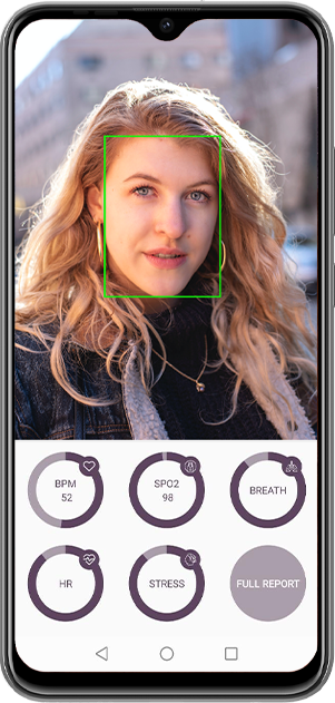 ClearSCAN solution applies a unique mix of signal processing and AI technologies, combined with a proprietary mathematical back-end processor that analyzes the video taken from the upper cheek skin region of a human face. Using the extracted PPG (photoplethysmogram) signal, the ClearSCAN technology is able to calculate Heart Rate, Oxygen Saturation (SpO2) and Respiration Rate. Heart Rate Variability (HRV) is calculated based on Heart Rate data, and further serves as the data upon which Mental Stress measurements are determined.